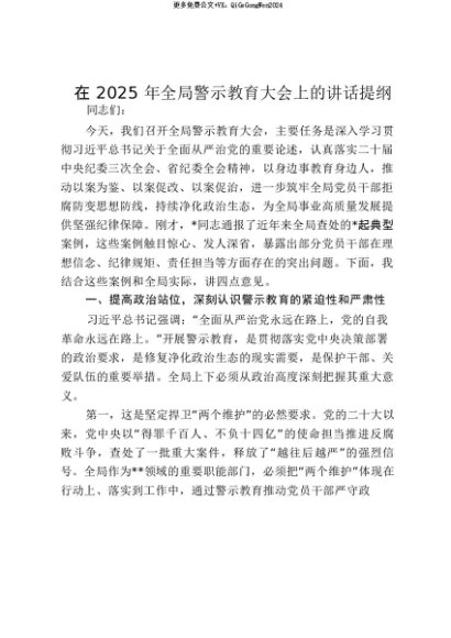 【七哥公文】2025年:【七哥公文】在2025年全局警示教育大会上的讲话提纲_20250815_213026+更多免费公文+VX:QiGeGongWen2024+更多免费公文+VX:QiGeGongWen2024