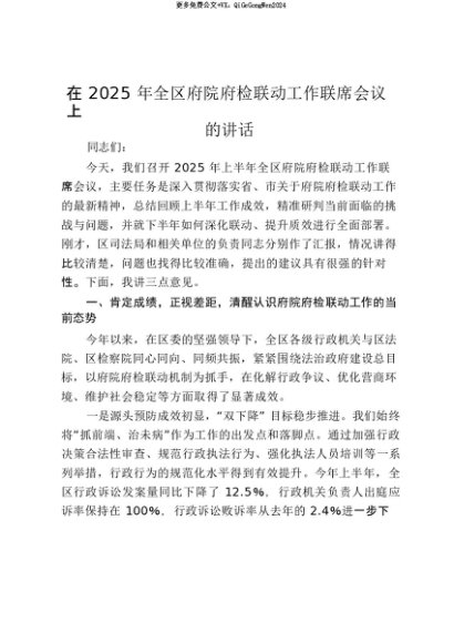 【七哥公文】2025年:【七哥公文】在2025年全区府院府检联动工作联席会议上的讲话_20250815_213026+更多免费公文+VX:QiGeGongWen2024+更多免费公文+VX:QiGeGongWen2024