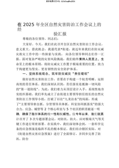 【七哥公文】2025年:【七哥公文】在2025年全区自然灾害防治工作会议上的经验汇报_20250815_213026+更多免费公文+VX:QiGeGongWen2024+更多免费公文+VX:QiGeGongWen2024