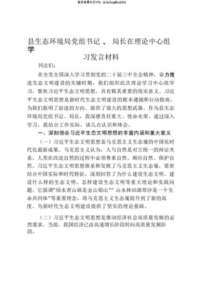 【七哥公文】2025年:【七哥公文】县生态环境局党组书记、局长在理论中心组学习发言材料_20250815_213025+更多免费公文+VX:QiGeGongWen2024+更多免费公文+VX:QiGeGongWen2024