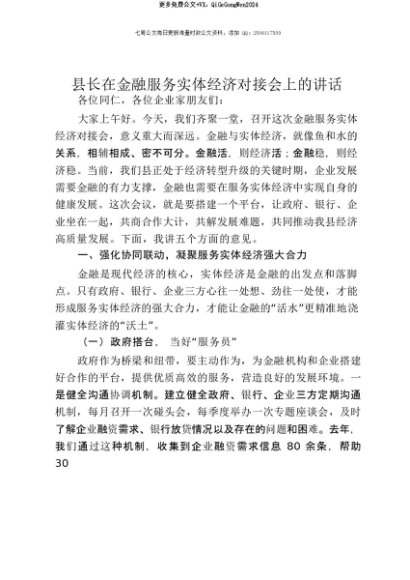 【七哥公文】2025年:【七哥公文】县长在金融服务实体经济对接会上的讲话+更多免费公文+VX:QiGeGongWen2024+更多免费公文+VX:QiGeGongWen2024