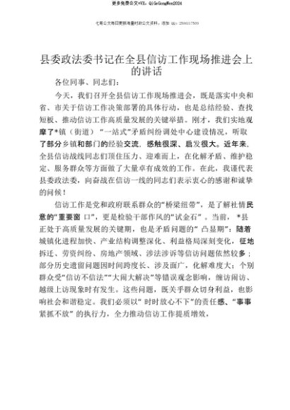 【七哥公文】2025年:【七哥公文】县委政法委书记在全县信访工作现场推进会上的讲话+更多免费公文+VX:QiGeGongWen2024+更多免费公文+VX:QiGeGongWen2024