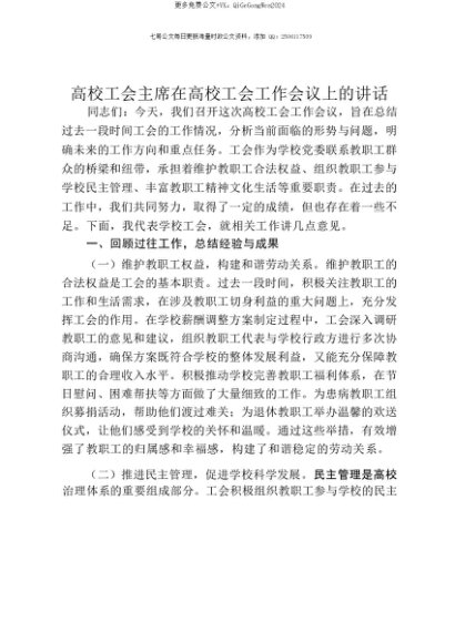 【七哥公文】2025年:【七哥公文】高校工会主席在高校工会工作会议上的讲话+更多免费公文+VX:QiGeGongWen2024+更多免费公文+VX:QiGeGongWen2024