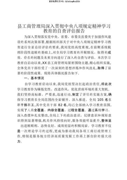 【七哥公文】2025年:【七哥公文】县工商管理局深入贯彻中央八项规定精神学习教育的自查评估报告_20250815_213025+更多免费公文+VX:QiGeGongWen2024+更多免费公文+VX:QiGeGongWen2024