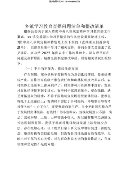 【七哥公文】2025年:【七哥公文】乡镇贯彻中央八项规定精神学习教育查摆问题清单和整改清单_20250815_213025+更多免费公文+VX:QiGeGongWen2024+更多免费公文+VX:QiGeGongWen2024