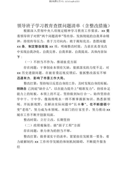 【七哥公文】2025年:【七哥公文】领导班子贯彻中央八项规定精神学习教育查摆问题清单(含整改措施)_20250815_213025+更多免费公文+VX:QiGeGongWen2024+更多免费公文+VX:QiGeGongWen2024