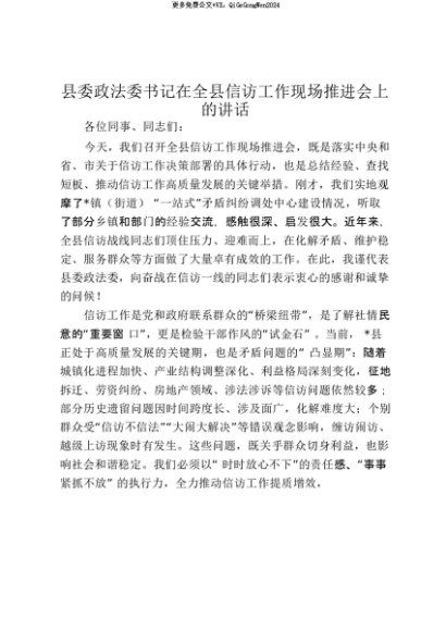 【七哥公文】2025年:【七哥公文】县委政法委书记在全县信访工作现场推进会上的讲话_20250815_213025+更多免费公文+VX:QiGeGongWen2024+更多免费公文+VX:QiGeGongWen2024