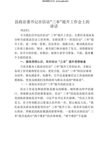 【七哥公文】2025年:【七哥公文】县政法委书记在信访“三率”提升工作会上的讲话_20250815_213025+更多免费公文+VX:QiGeGongWen2024+更多免费公文+VX:QiGeGongWen2024
