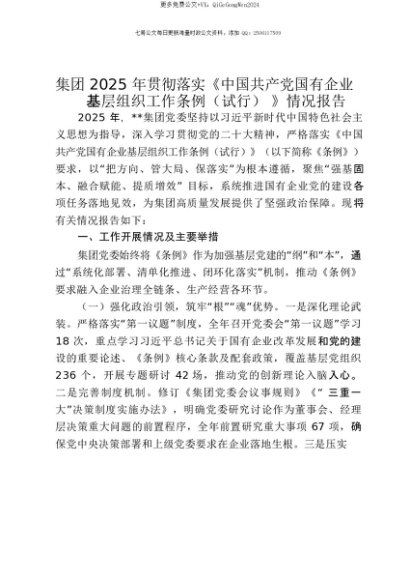 【七哥公文】2025年:【七哥公文】集团2025年贯彻落实《中国共产党国有企业基层组织工作条例(试行)》情况报告+更多免费公文+VX:QiGeGongWen2024+更多免费公文+VX:QiGeGongWen2024