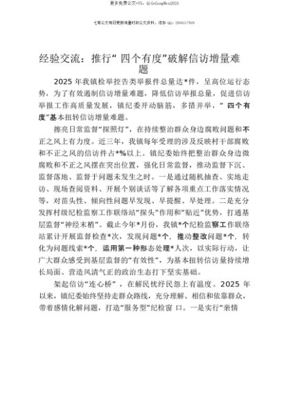 【七哥公文】2025年:【七哥公文】经验交流:推行“四个有度”破解信访增量难题+更多免费公文+VX:QiGeGongWen2024+更多免费公文+VX:QiGeGongWen2024