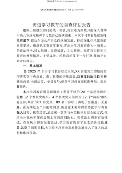 【七哥公文】2025年:【七哥公文】街道贯彻中央八项规定精神学习教育的自查评估报告+更多免费公文+VX:QiGeGongWen2024+更多免费公文+VX:QiGeGongWen2024