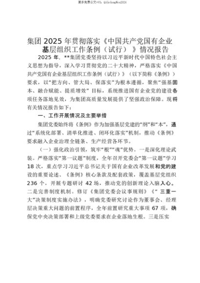 【七哥公文】2025年:【七哥公文】集团2025年贯彻落实《中国共产党国有企业基层组织工作条例(试行)》情况报告_20250815_213025+更多免费公文+VX:QiGeGongWen2024+更多免费公文+VX:QiGeGongWen2024