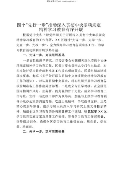 【七哥公文】2025年:【七哥公文】经验材料:四个“先行一步”推动深入贯彻中央八项规定精神学习教育有序开展_20250815_213025+更多免费公文+VX:QiGeGongWen2024+更多免费公文+VX:QiGeGongWen2024