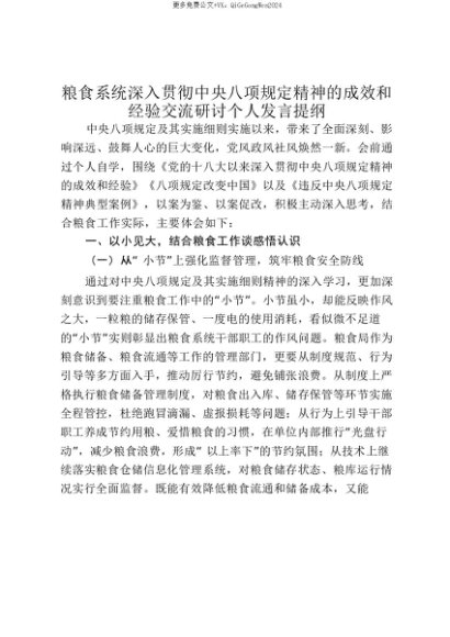 【七哥公文】2025年:【七哥公文】粮食系统深入贯彻中央八项规定精神的成效和经验交流研讨个人发言提纲_20250815_213025+更多免费公文+VX:QiGeGongWen2024+更多免费公文+VX:QiGeGongWen2024