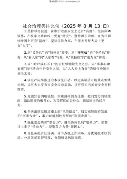 【七哥公文】2025年:【七哥公文】社会治理类排比句(2025年8月13日)_20250815_213025+更多免费公文+VX:QiGeGongWen2024+更多免费公文+VX:QiGeGongWen2024