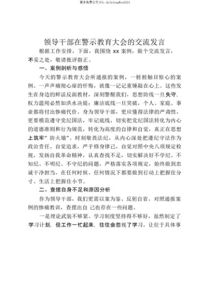 【七哥公文】2025年:【七哥公文】领导干部在警示教育大会的交流发言_20250815_213025+更多免费公文+VX:QiGeGongWen2024+更多免费公文+VX:QiGeGongWen2024