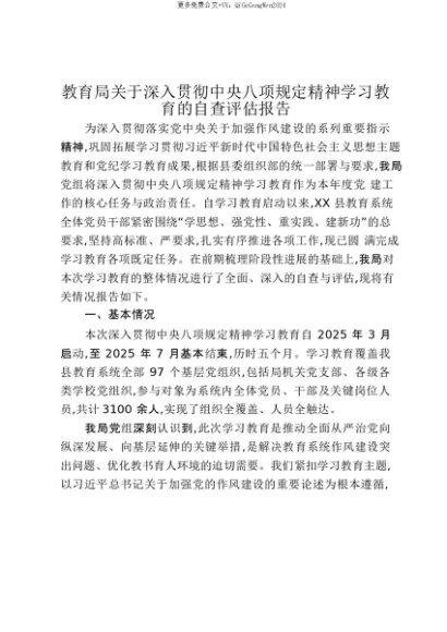 【七哥公文】2025年:【七哥公文】教育局关于深入贯彻中央八项规定精神学习教育的自查评估报告_20250815_213025+更多免费公文+VX:QiGeGongWen2024+更多免费公文+VX:QiGeGongWen2024