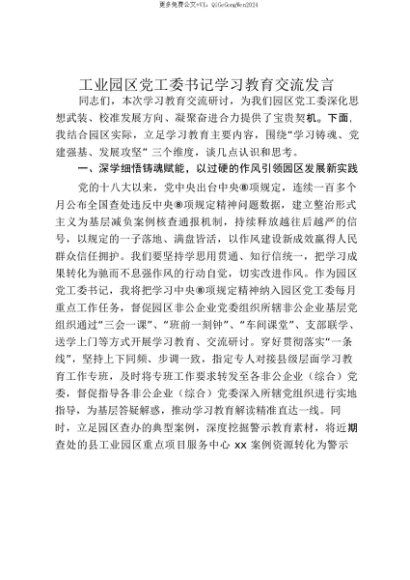 【七哥公文】2025年:【七哥公文】工业园区党工委书记贯彻中央八项规定精神学习教育交流发言_20250815_213025+更多免费公文+VX:QiGeGongWen2024+更多免费公文+VX:QiGeGongWen2024