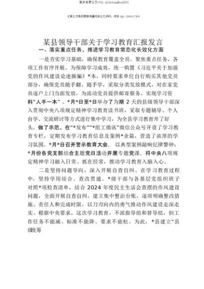 【七哥公文】2025年:【七哥公文】某县领导干部关于贯彻落实中央八项规定精神学习教育汇报发言+更多免费公文+VX:QiGeGongWen2024+更多免费公文+VX:QiGeGongWen2024