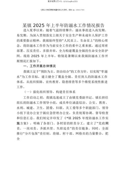 【七哥公文】2025年:【七哥公文】某镇2025年上半年防溺水工作情况报告+更多免费公文+VX:QiGeGongWen2024+更多免费公文+VX:QiGeGongWen2024