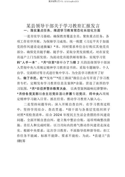 【七哥公文】2025年:【七哥公文】某县领导干部关于贯彻落实中央八项规定精神学习教育汇报发言_20250815_213025+更多免费公文+VX:QiGeGongWen2024+更多免费公文+VX:QiGeGongWen2024