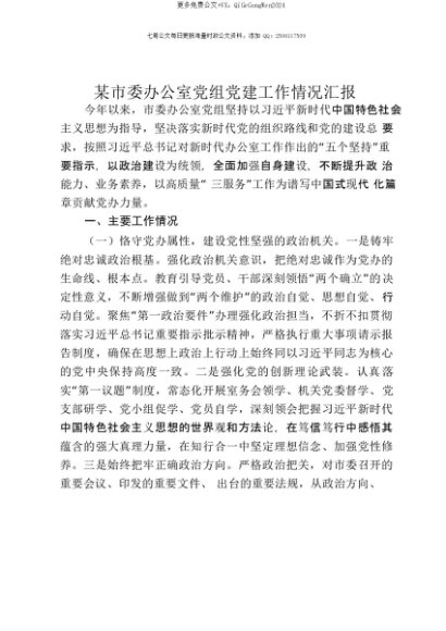 【七哥公文】2025年:【七哥公文】某市委办公室党组党建工作情况汇报+更多免费公文+VX:QiGeGongWen2024+更多免费公文+VX:QiGeGongWen2024