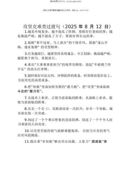 【七哥公文】2025年:【七哥公文】攻坚克难类过渡句(2025年8月12日)+更多免费公文+VX:QiGeGongWen2024+更多免费公文+VX:QiGeGongWen2024