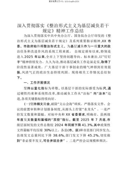 【七哥公文】2025年:【七哥公文】深入贯彻落实《整治形式主义为基层减负若干规定》精神工作总结_20250815_213025+更多免费公文+VX:QiGeGongWen2024+更多免费公文+VX:QiGeGongWen2024