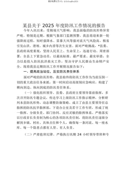 【七哥公文】2025年:【七哥公文】某县关于2025年度防汛工作情况的报告_20250815_213025+更多免费公文+VX:QiGeGongWen2024+更多免费公文+VX:QiGeGongWen2024