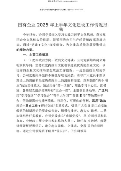 【七哥公文】2025年:【七哥公文】国有企业2025年上半年文化建设工作情况报告+更多免费公文+VX:QiGeGongWen2024+更多免费公文+VX:QiGeGongWen2024