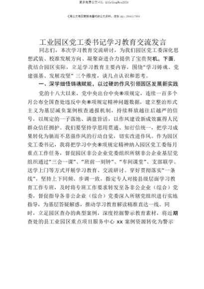 【七哥公文】2025年:【七哥公文】工业园区党工委书记贯彻中央八项规定精神学习教育交流发言+更多免费公文+VX:QiGeGongWen2024+更多免费公文+VX:QiGeGongWen2024