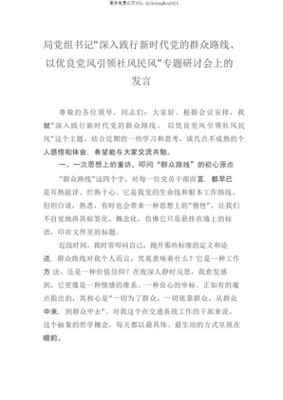 【七哥公文】2025年:【七哥公文】局党组书记“深入践行新时代党的群众路线、以优良党风引领社风民风”专题研讨会上的发言_20250815_213024+更多免费公文+VX:QiGeGongWen2024+更多免费公文+VX:QiGeGongWen2024