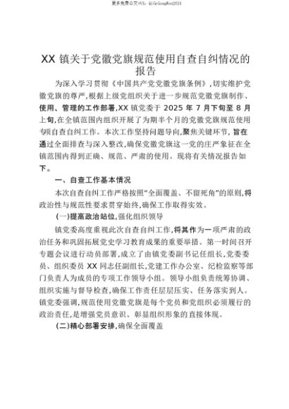 【七哥公文】2025年:【七哥公文】XX镇关于党徽党旗规范使用自查自纠情况的报告_20250815_213024+更多免费公文+VX:QiGeGongWen2024+更多免费公文+VX:QiGeGongWen2024