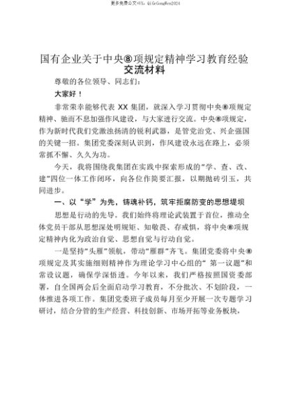 【七哥公文】2025年:【七哥公文】国有企业关于中央八项规定精神学习教育经验交流材料:国有企业“学、查、改、建”四位一体工作闭环_20250815_213024+更多免费公文+VX:QiGeGongWen2024+更多免费公文+VX:QiGeGongWen2024