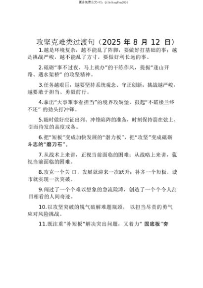 【七哥公文】2025年:【七哥公文】攻坚克难类过渡句(2025年8月12日)_20250815_213025+更多免费公文+VX:QiGeGongWen2024+更多免费公文+VX:QiGeGongWen2024