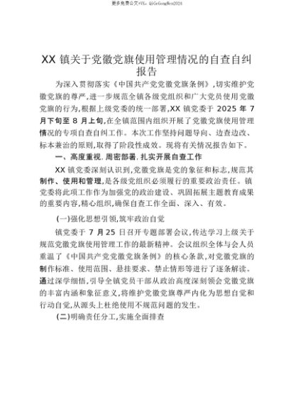 【七哥公文】2025年:【七哥公文】XX镇关于党徽党旗使用管理情况的自查自纠报告_20250815_213024+更多免费公文+VX:QiGeGongWen2024+更多免费公文+VX:QiGeGongWen2024
