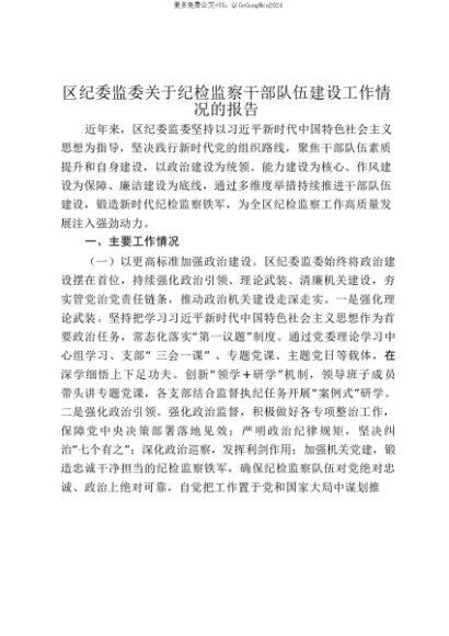 【七哥公文】2025年:【七哥公文】区纪委监委关于纪检监察干部队伍建设工作情况的报告_20250815_213024+更多免费公文+VX:QiGeGongWen2024+更多免费公文+VX:QiGeGongWen2024