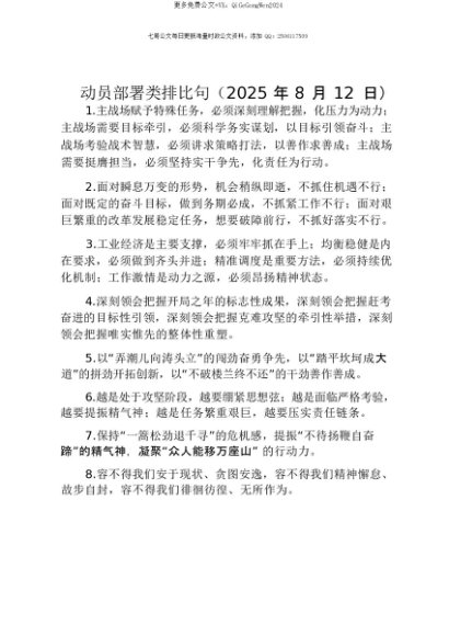 【七哥公文】2025年:【七哥公文】动员部署类排比句(2025年8月12日)+更多免费公文+VX:QiGeGongWen2024+更多免费公文+VX:QiGeGongWen2024