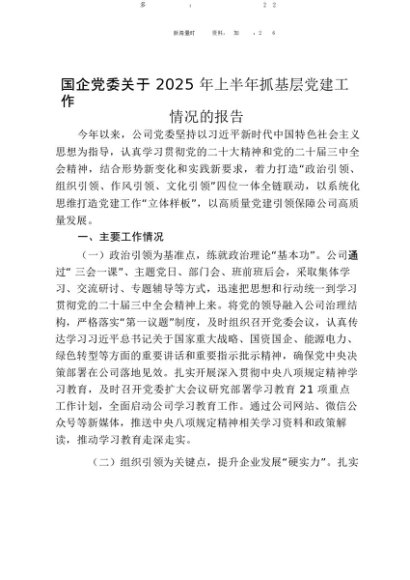 【七哥公文】2025年:【七哥公文】国企党委关于2025年上半年抓基层党建工作情况的报告+更多免费公文+VX:QiGeGongWen2024+更多免费公文+VX:QiGeGongWen2024