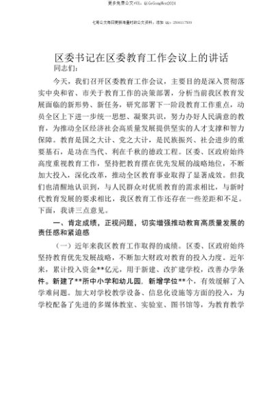 【七哥公文】2025年:【七哥公文】区委书记在区委教育工作会议上的讲话+更多免费公文+VX:QiGeGongWen2024+更多免费公文+VX:QiGeGongWen2024