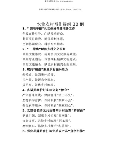 【七哥公文】2025年:【七哥公文】农业农村写作提纲30例+更多免费公文+VX:QiGeGongWen2024+更多免费公文+VX:QiGeGongWen2024