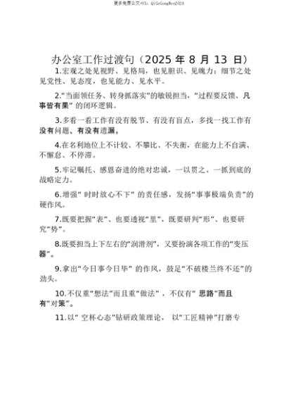 【七哥公文】2025年:【七哥公文】办公室工作过渡句(2025年8月13日)_20250815_213024+更多免费公文+VX:QiGeGongWen2024+更多免费公文+VX:QiGeGongWen2024