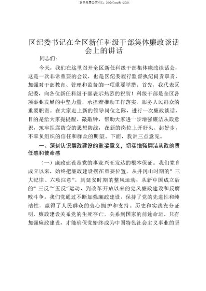【七哥公文】2025年:【七哥公文】区纪委书记在全区新任科级干部集体廉政谈话会上的讲话_20250815_213024+更多免费公文+VX:QiGeGongWen2024+更多免费公文+VX:QiGeGongWen2024