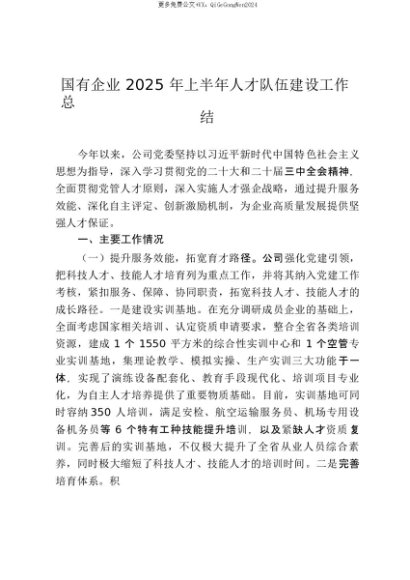 【七哥公文】2025年:【七哥公文】国有企业2025年上半年人才队伍建设工作总结_20250815_213024+更多免费公文+VX:QiGeGongWen2024+更多免费公文+VX:QiGeGongWen2024