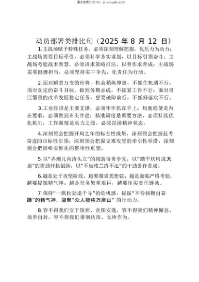 【七哥公文】2025年:【七哥公文】动员部署类排比句(2025年8月12日)_20250815_213024+更多免费公文+VX:QiGeGongWen2024+更多免费公文+VX:QiGeGongWen2024