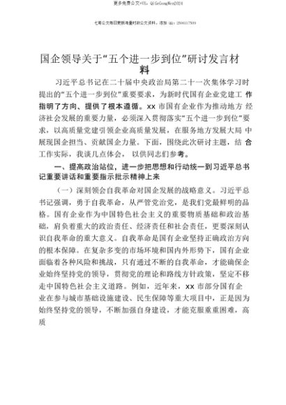 【七哥公文】2025年:【七哥公文】国企领导关于“五个进一步到位”研讨发言材料+更多免费公文+VX:QiGeGongWen2024+更多免费公文+VX:QiGeGongWen2024