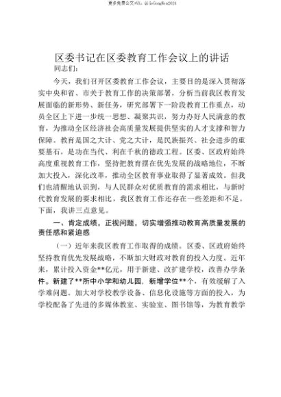 【七哥公文】2025年:【七哥公文】区委书记在区委教育工作会议上的讲话_20250815_213024+更多免费公文+VX:QiGeGongWen2024+更多免费公文+VX:QiGeGongWen2024