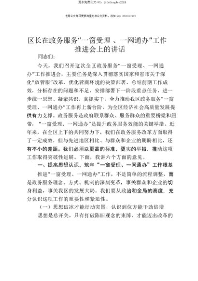 【七哥公文】2025年:【七哥公文】区长在政务服务“一窗受理、一网通办”工作推进会上的讲话+更多免费公文+VX:QiGeGongWen2024+更多免费公文+VX:QiGeGongWen2024