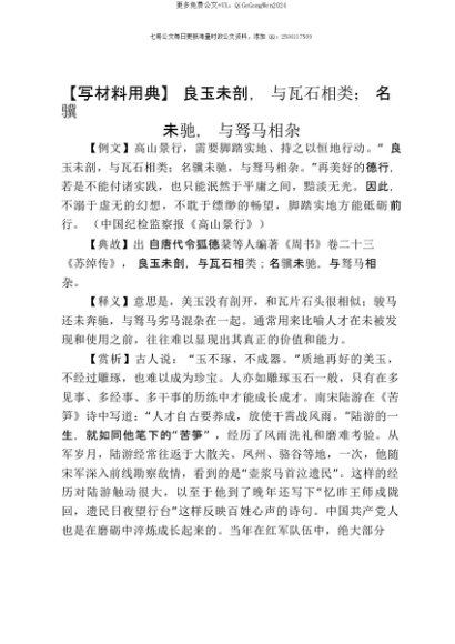 【七哥公文】2025年:【七哥公文】【写材料用典】良玉未剖,与瓦石相类;名骥未驰,与驽马相杂+更多免费公文+VX:QiGeGongWen2024+更多免费公文+VX:QiGeGongWen2024