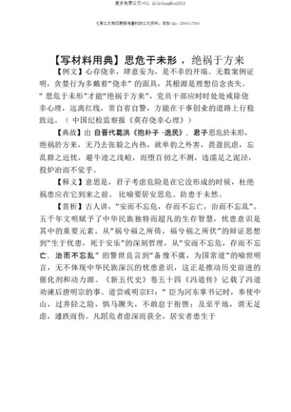 【七哥公文】2025年:【七哥公文】【写材料用典】思危于未形,绝祸于方来+更多免费公文+VX:QiGeGongWen2024+更多免费公文+VX:QiGeGongWen2024